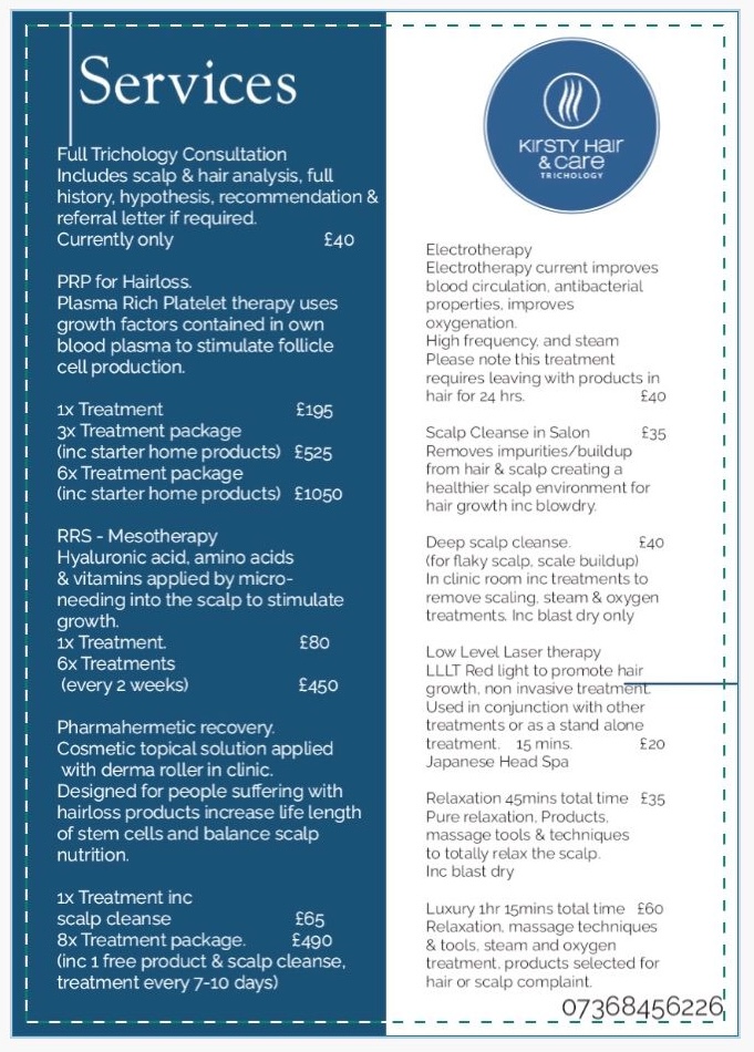 HAIR LOSS AND SCALP TREATMENTS INCLUDE: